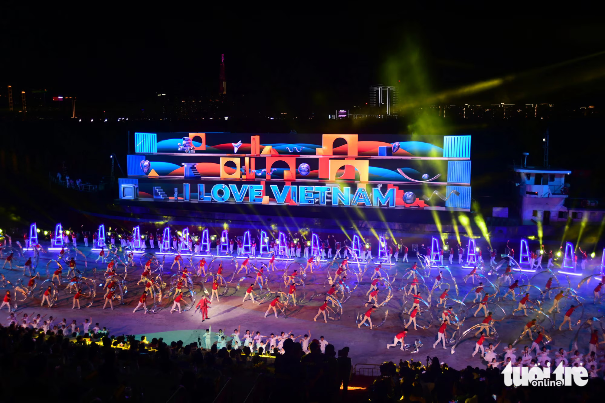 It is a combination of general director Le Hai Yen, stage director Pham Hoang Nam, music director Duc Tri, choreographer Tan Loc and designer Viet Hung. The program also combines many modern technologies such as cinematography, 3D mapping projection technology, water screen, moving stage on water, drone show, and fireworks display.