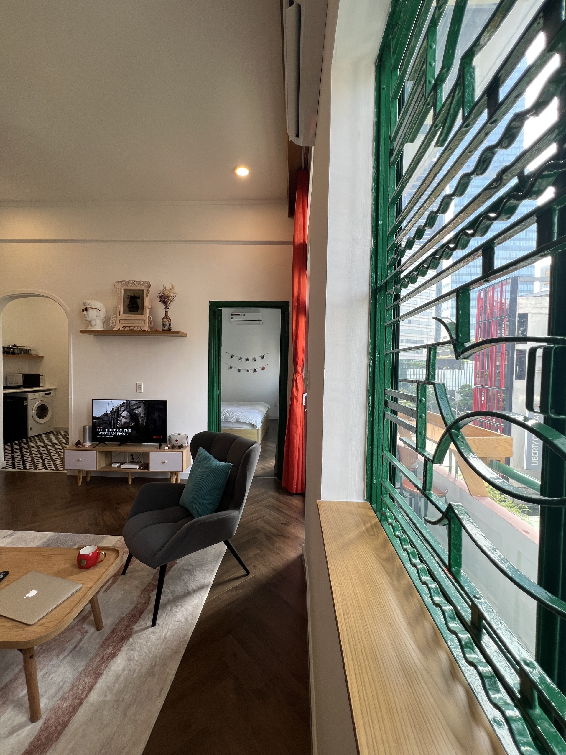 Our Boho apartment is on the fourth floor of a heritage building that housed American officials in the 1960s. We have completed renovated the interior but kept the structure intact.