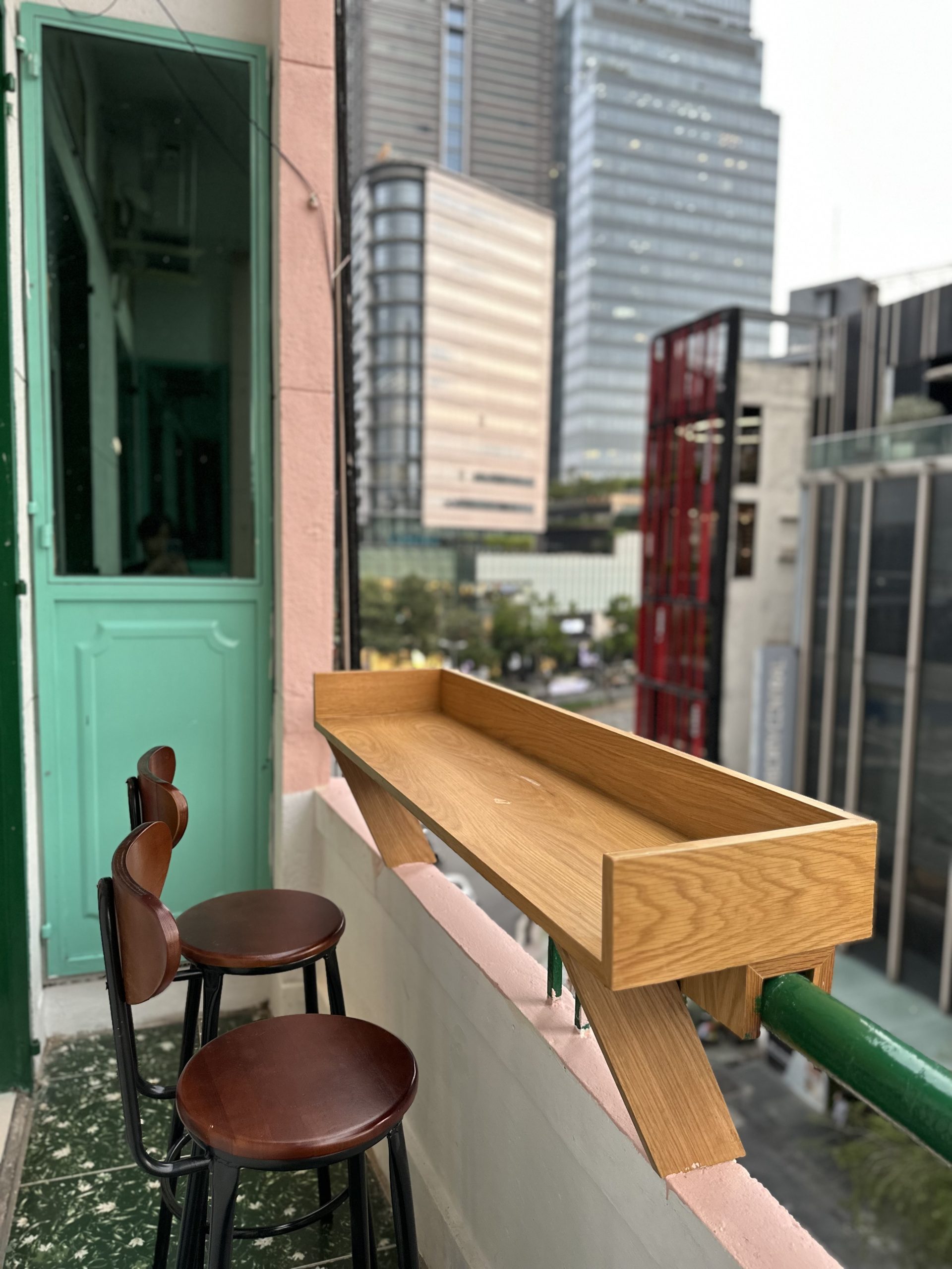 It features 3.8 meter high ceilings and glass windows and doors that beautifully filters the sunlight. Both the living room and the bedroom have their own balcony where you can sit and watch the center of the city.