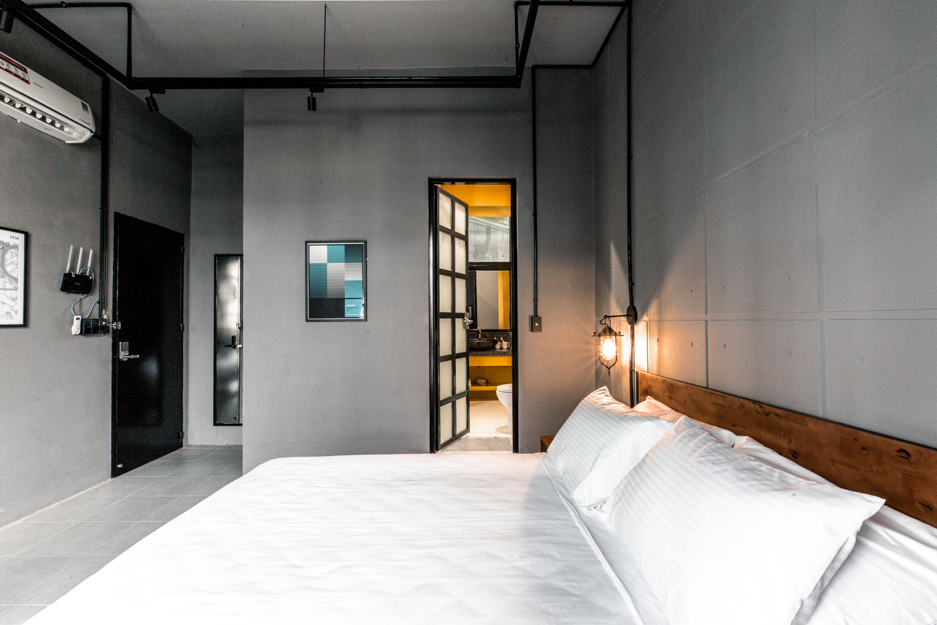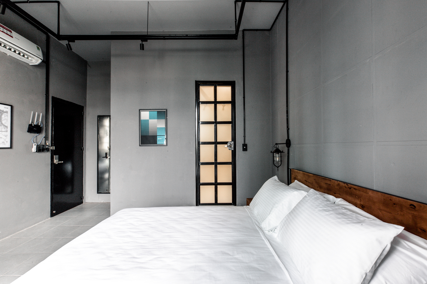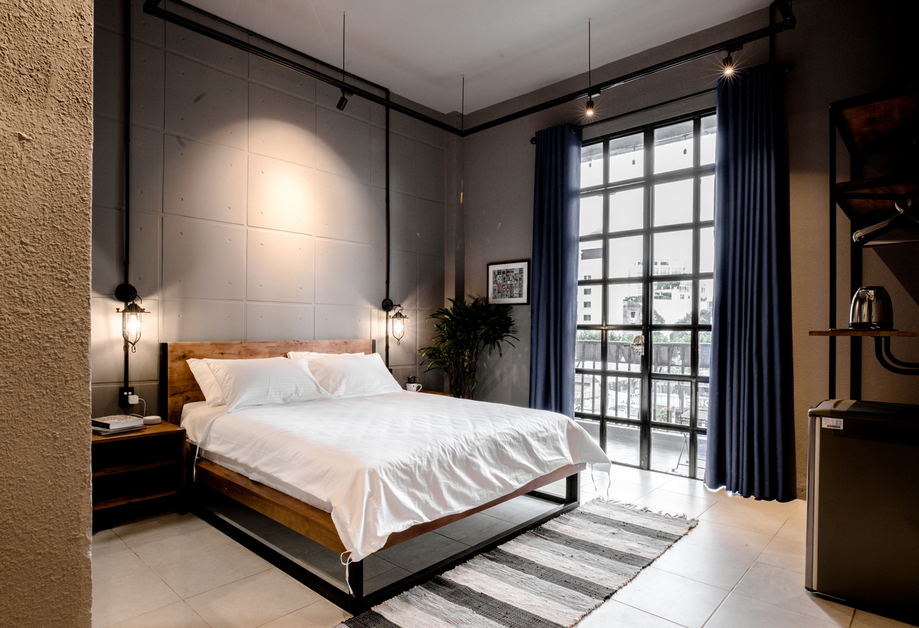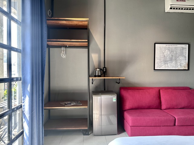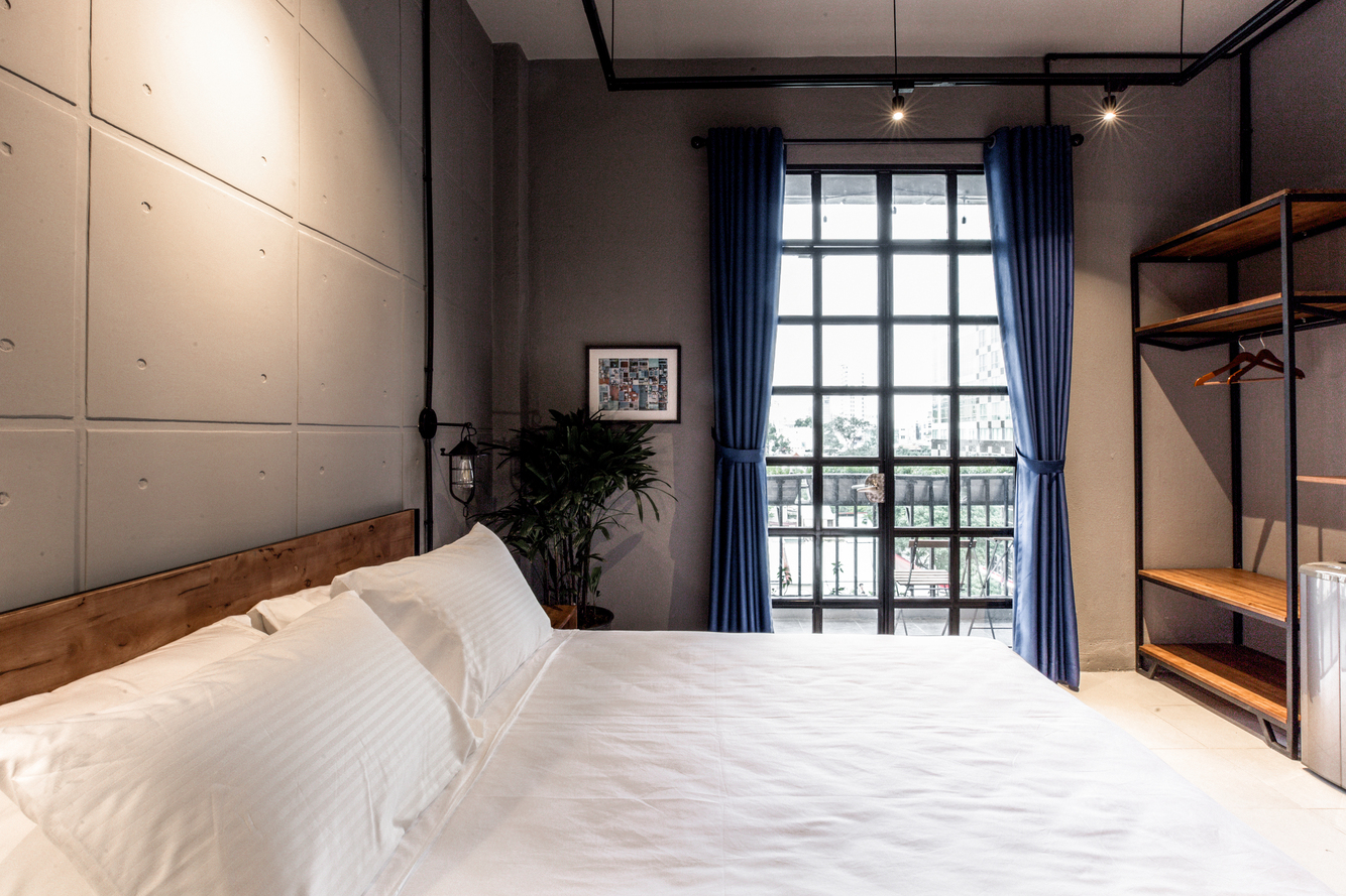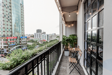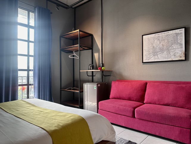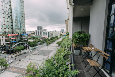 If you want to be in the real center of the city, check out our industrial suite! Our well-equipped unit is located in a heritage building between the two most iconic streets in Saigon, Nguyen Hue and Dong Khoi. This puts you literally walking distance from the most famous landmarks and a huge selection of cafes, restaurants, shopping and night-life. The highlight is our spacious balcony, which gives you a sweeping view of Nguyen Hue and downtown Saigon, including Bitexco Tower and City Hall.