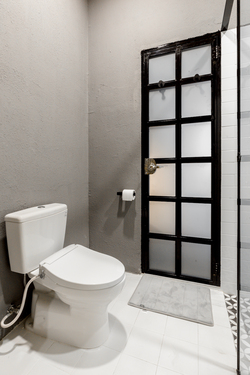 – Private bathroom with rain shower and Toto toilet with built-in bidet