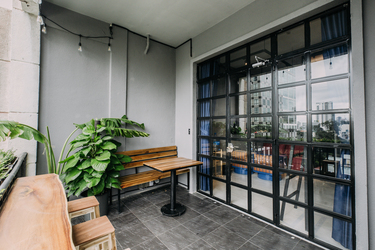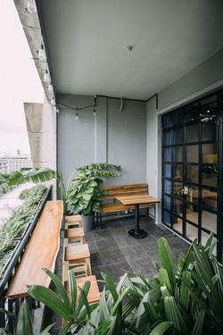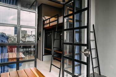Our 6th floor unit features a bedroom, bathroom, living room with sofa and coffee table. It opens up to a huge 3 meter balcony overlooking Nguyen Hue.