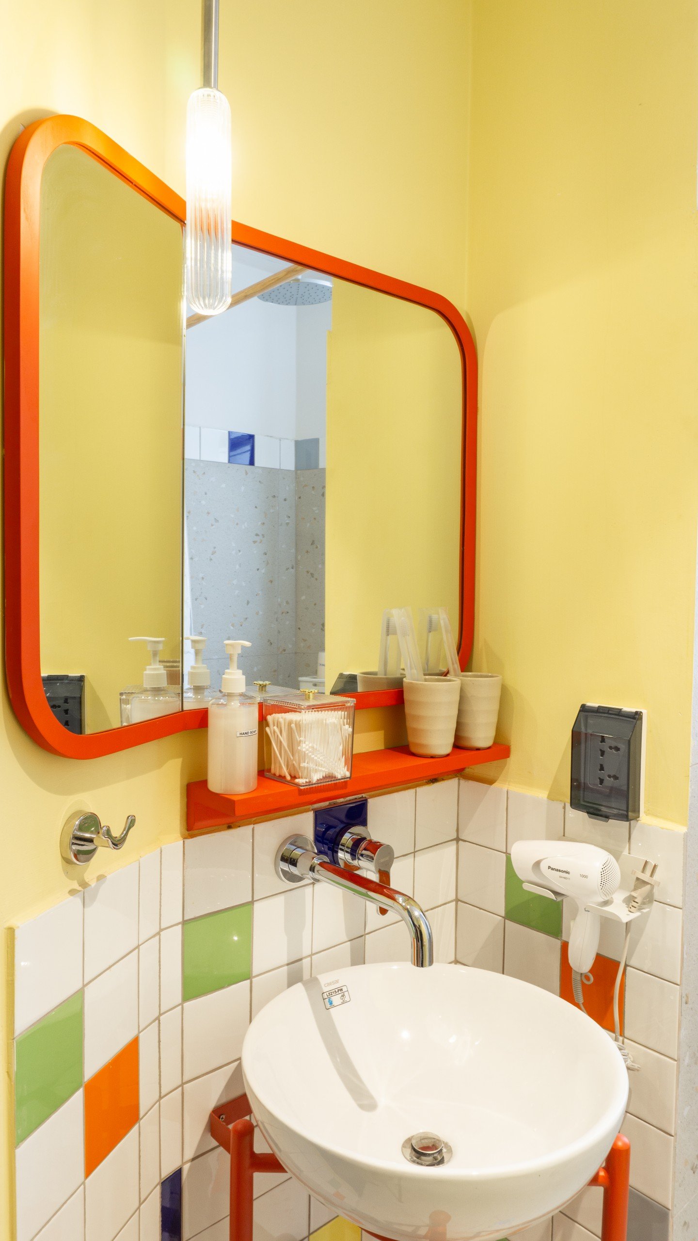 Guests can enjoy a snack or delicious drink at the ground floor coffee shop. The cafe has a chill and cozy vibe.