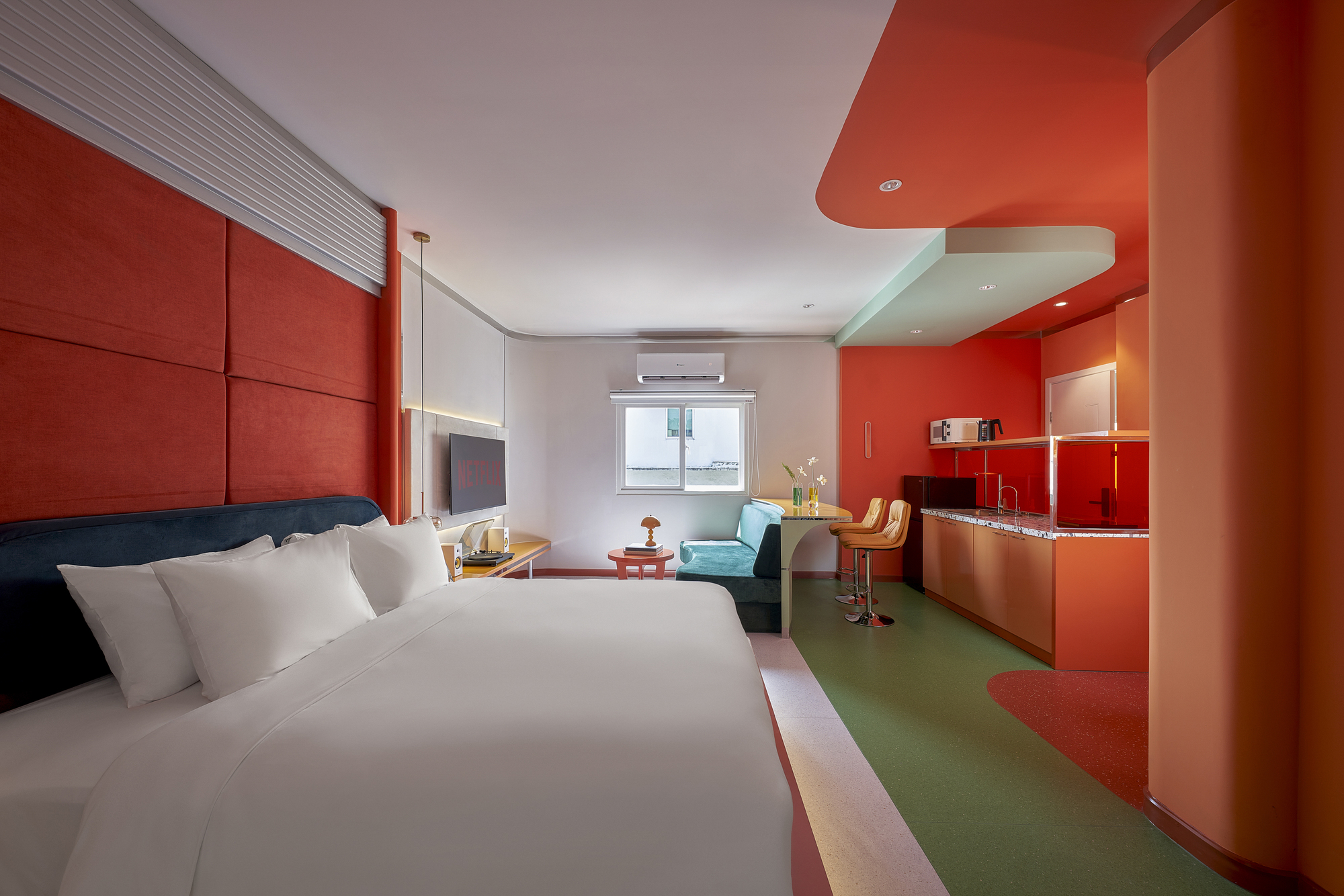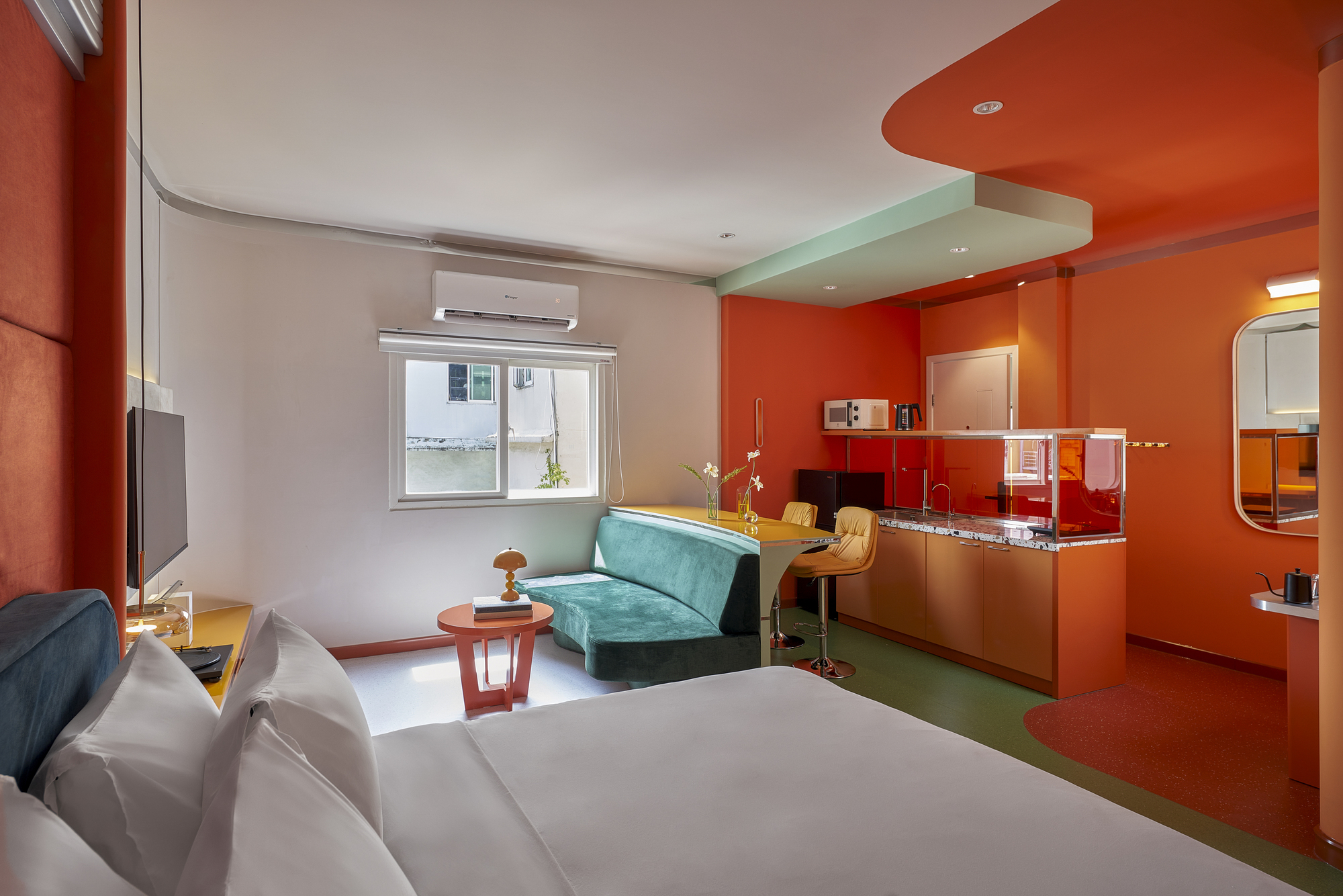 The 45sqm unit is filled with cool design touches, custom furniture, and every amenity needed for a great stay: